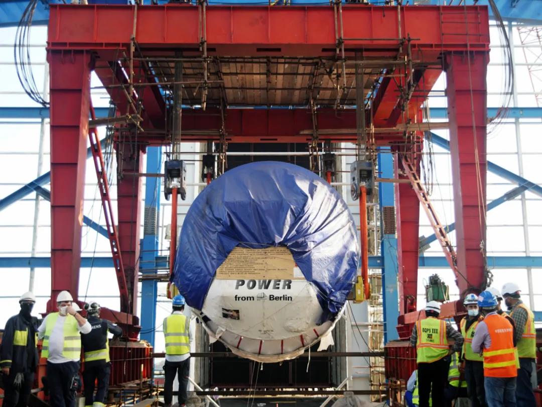 哈電國際項目團隊對港口清關(guān)、內(nèi)陸運輸、進廠道路改造、吊裝方案、施工交底等各環(huán)節(jié)的方案進行了細致的研討和充分的溝通,積極協(xié)調(diào)業(yè)主、主機廠、建安單位、運輸公司等各家合作單位,因地制宜地規(guī)劃進廠路線,制定安全高效的就位方案,圓滿的完成了燃機就位工作。1號燃機的順利就位為后續(xù)1號發(fā)電機、汽機就位及相關(guān)輔機安裝工作奠定了堅實基礎(chǔ)。