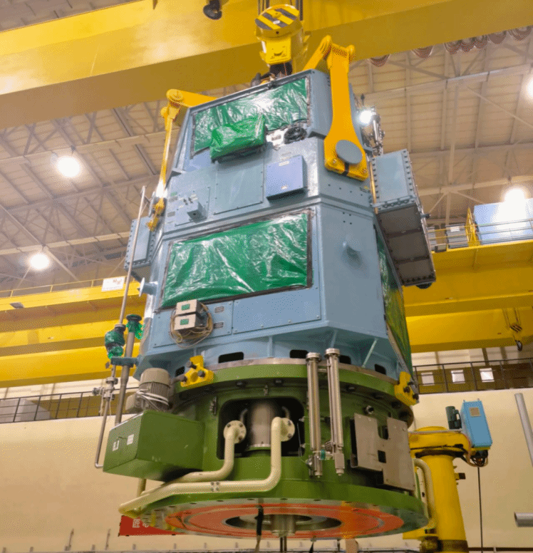 ★2024年5月20日,哈電集團參與研制的中國出口海外的首臺“華龍一號”核電機組——巴基斯坦卡拉奇核電2號(K-2)機組達到最終驗收條件,中巴雙方代表共同簽署最終驗收證書。圖為卡拉奇核電K-2機組主泵電機。
